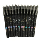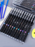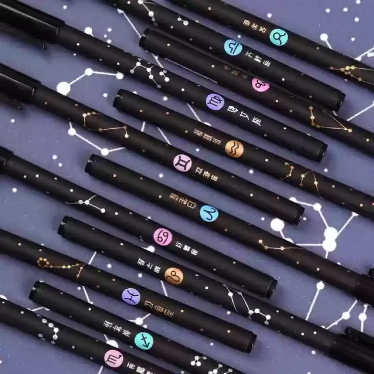 خودکار پاکن دار آبی با جوهر نیم ژل با نوک پنج دهم با طرح کهکشانی و بدنه ی مشکی و جوهر آبی .