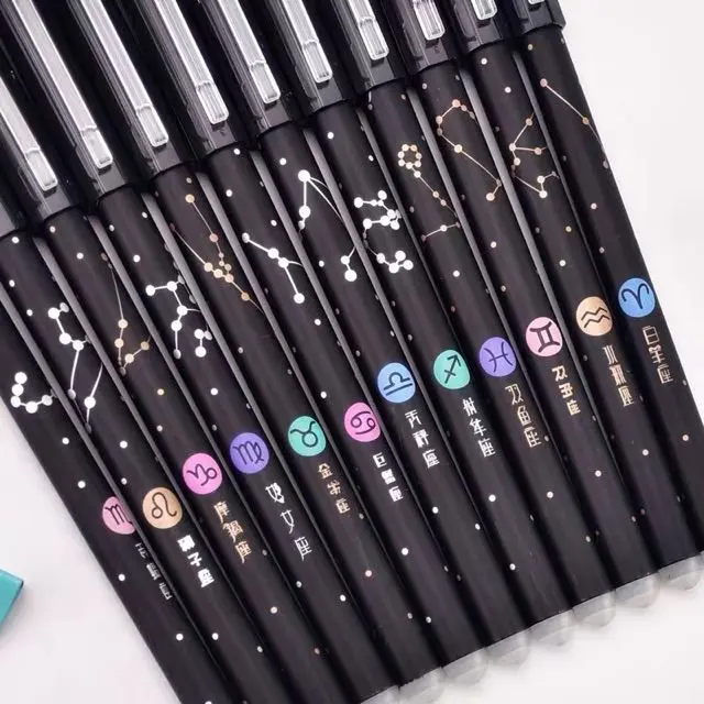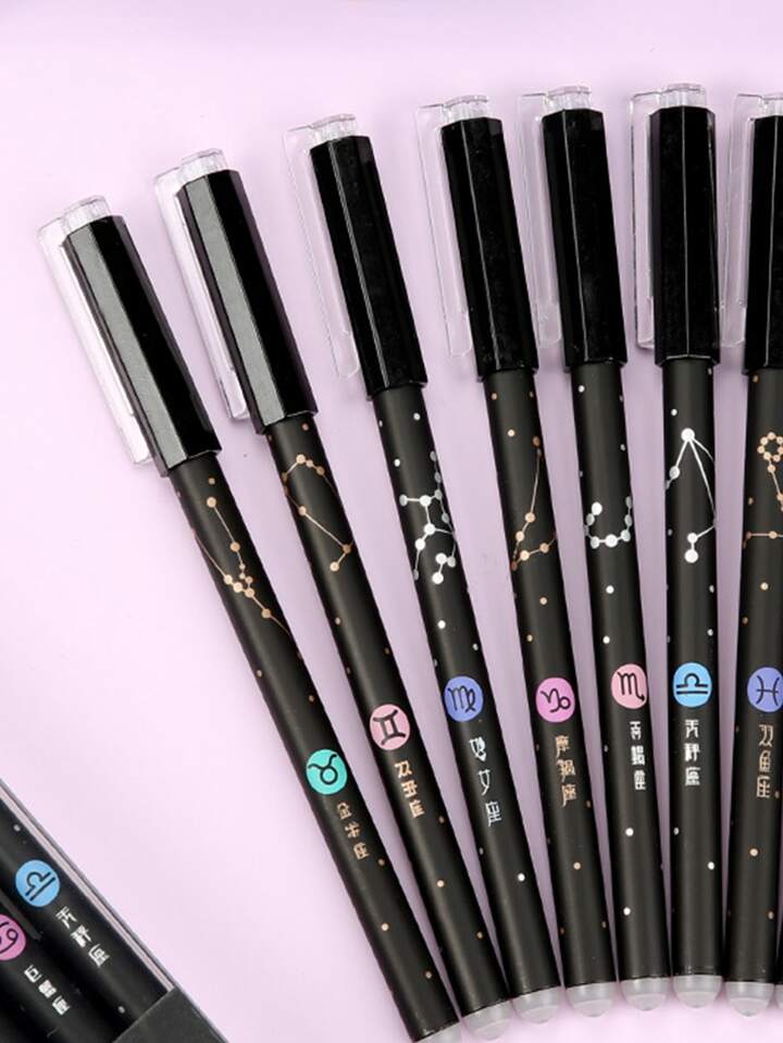 خودکار پاکن دار آبی با جوهر نیم ژل با نوک پنج دهم با طرح کهکشانی و بدنه ی مشکی و جوهر آبی .